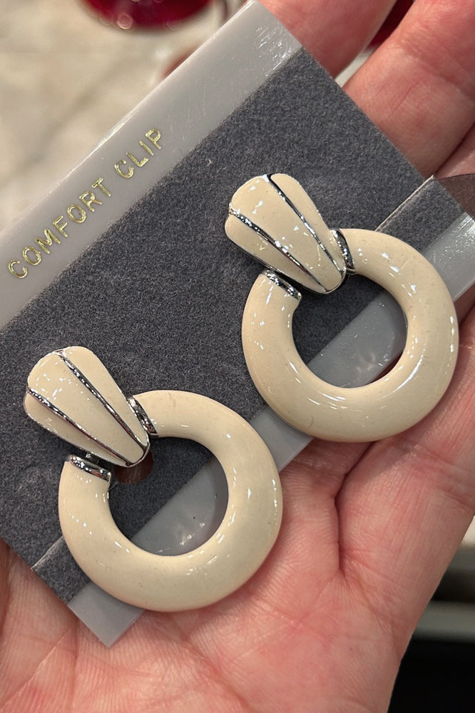アイボリーカラーのエナメル加工が施されたイヤリング