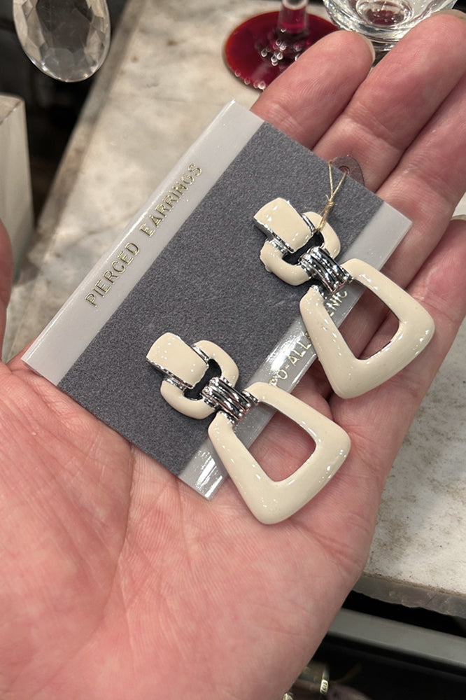 アイボリーカラーのエナメル加工が施された上下稼働型のスタッドタイプのピアスでしっかりと耳にフィットします。