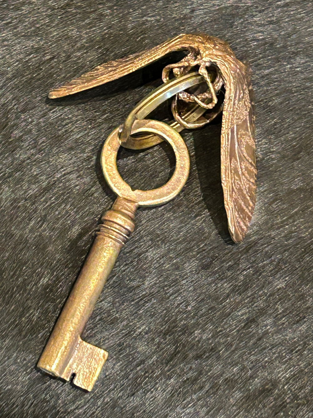 重厚感のある真鍮アンティークゴールドのキーリング。