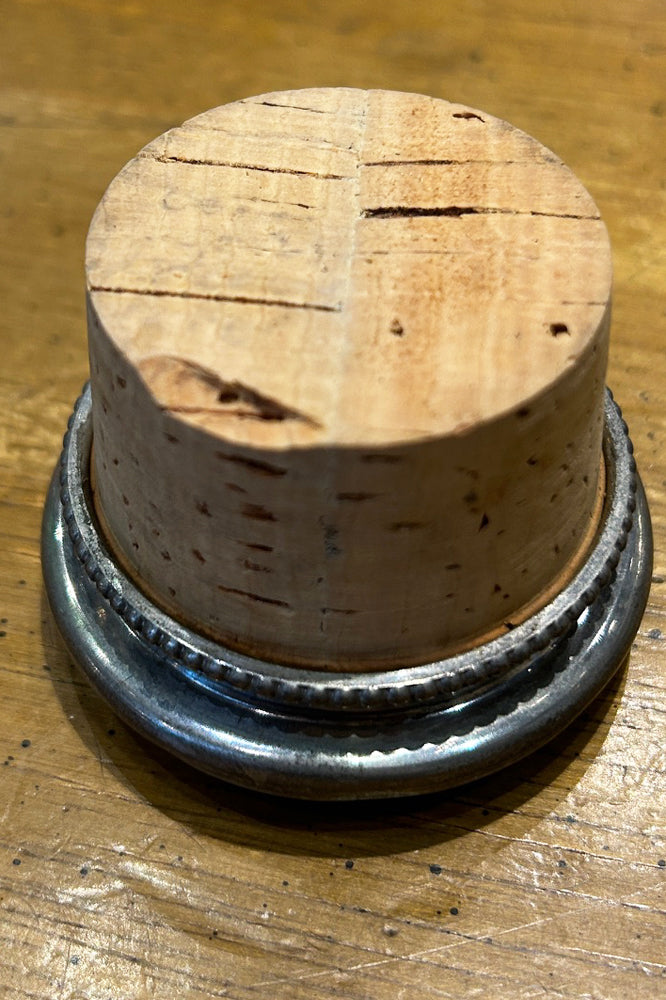 ガラスをしっかり守るアルミカップが付いています。年代を感じさせるコルクの栓は、多少の欠けがあっても使用可能です。