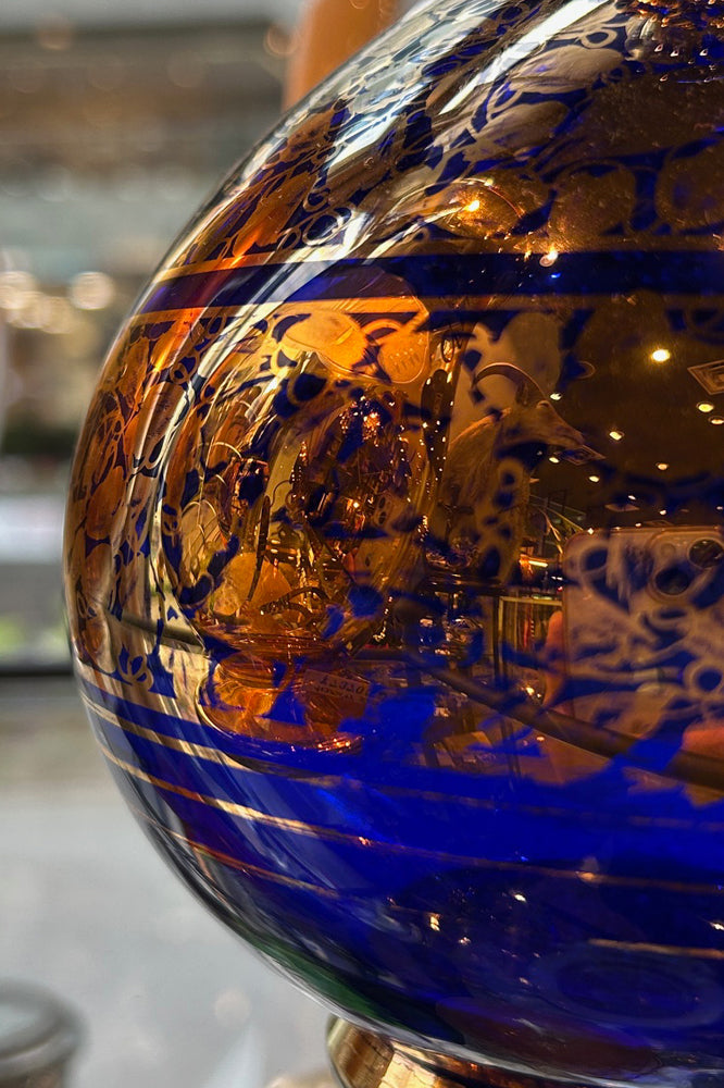 ブルーのボヘミアンガラスに金塗装が施された一輪差し