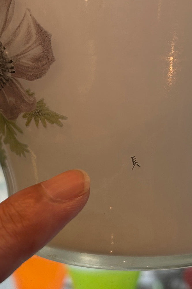 繊細に描かれたフラワーの横にわずかに書かれたとても小さなサイン