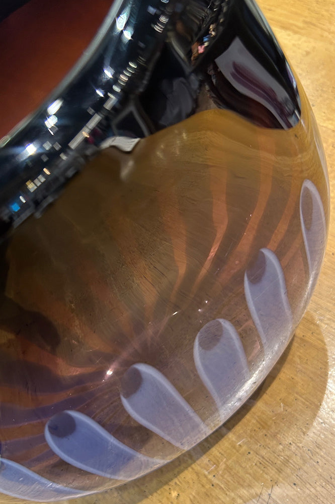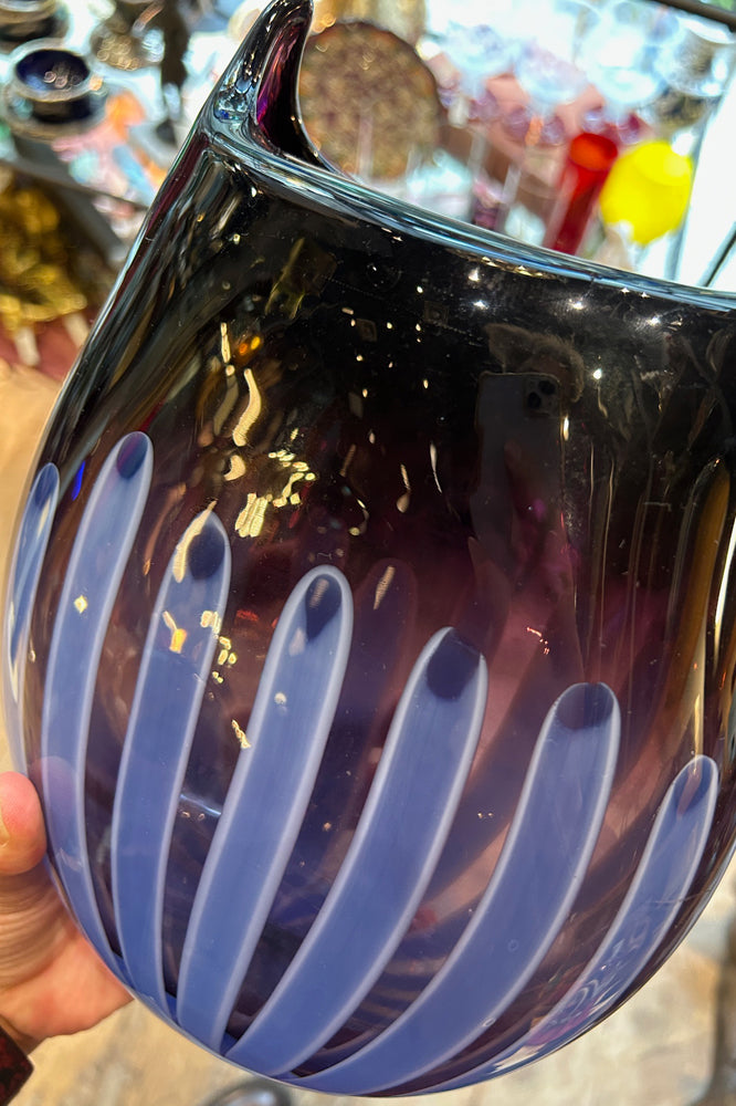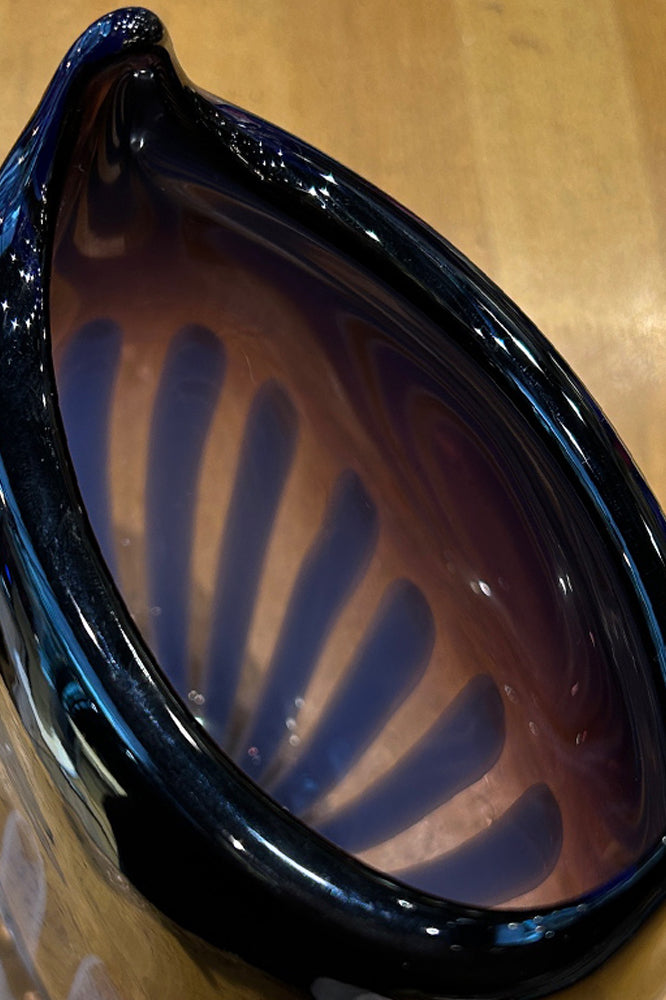 一見すると暗めで不透明な紫に見えますが、下部のブルーからパープルへの美しいグラデーションが光の当たり方で変化し、画像の様に様々な表情を見せます。