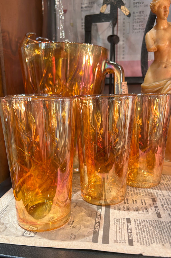 アンバーオレンジのオーロラ加工のピッチャー&4グラス