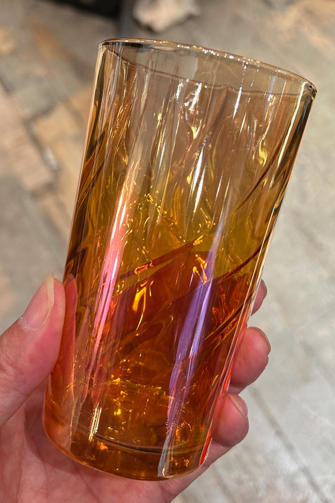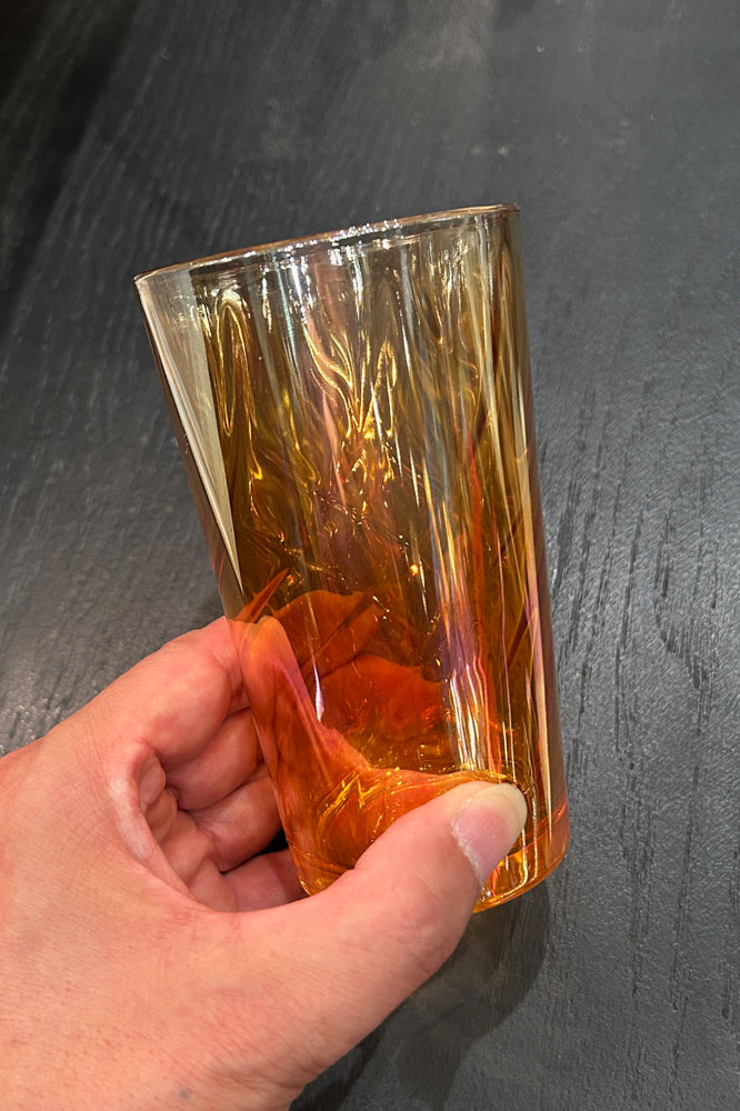 グラスは底から流れる様な流線型のラインがオーロラ加工により琥珀の持つ美しさを表現