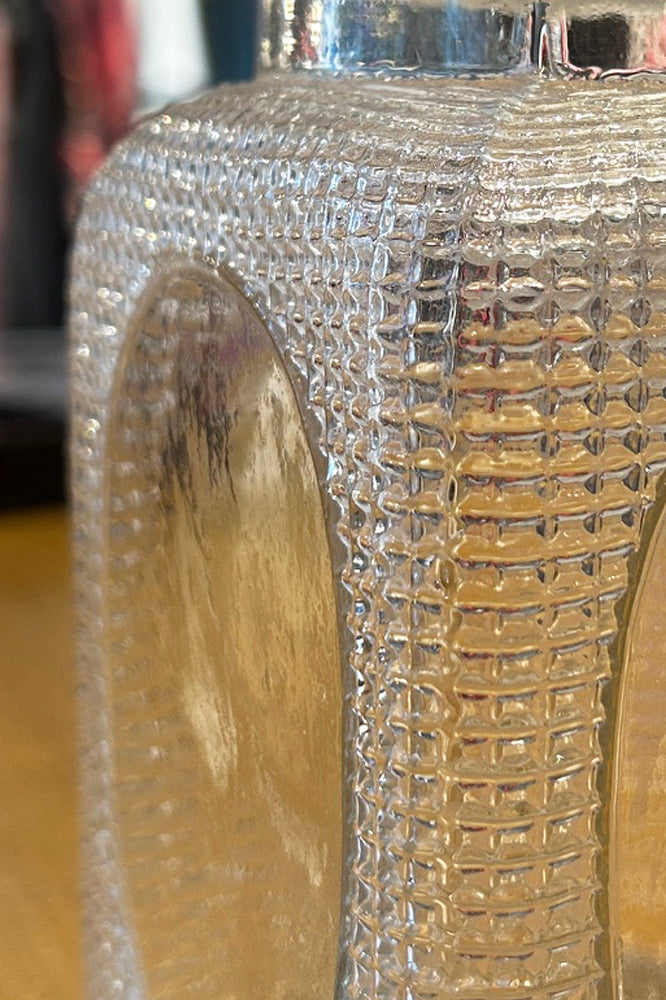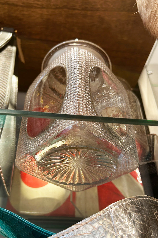 繊細なカットとクリアーな部分のコントラストが特徴で、底にも施されたカットが、全体のデザインに統一感を与えています。