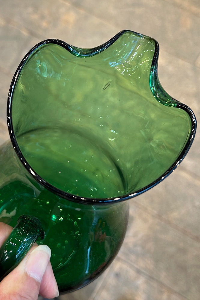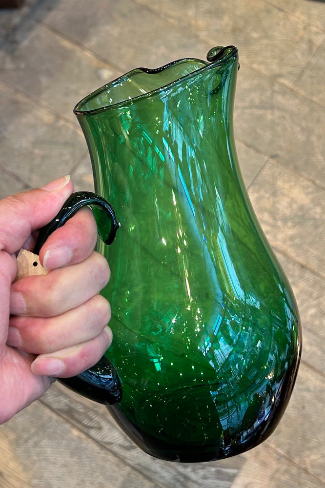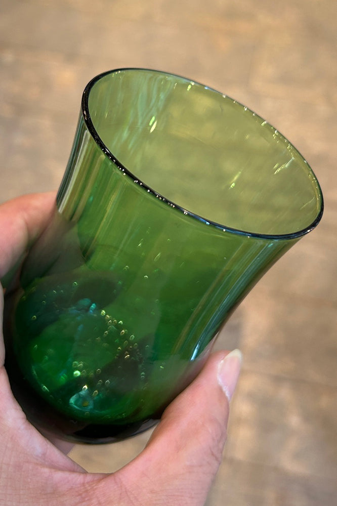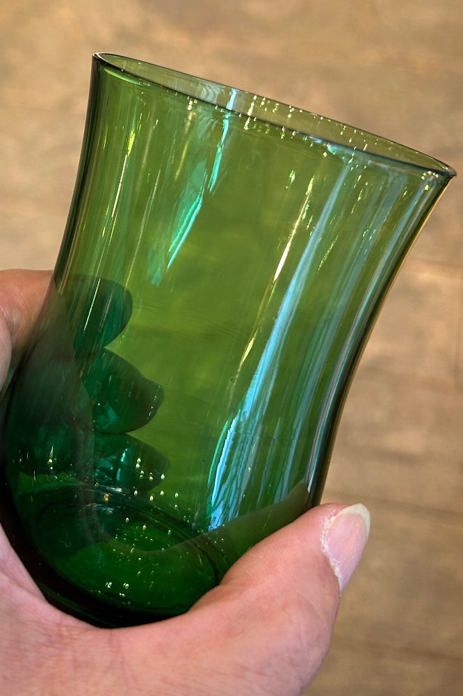 デキャンタと6つのグラスは、ガラスの厚さによって下部から上部にかけて美しい緑のグラデーションを表現。
